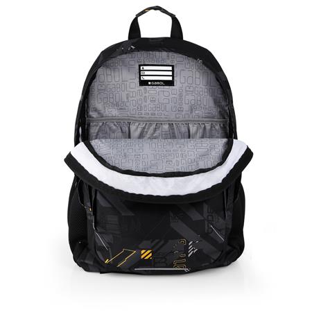 Hátizsák, iskolatáska, cipzáras, GABOL "Byte", fekete, geometrikus mintás